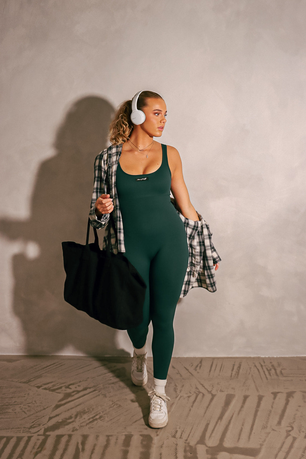 Our 24/7 SCULPT jumpsuit in emerald is a fashion-forward piece, that effortlessly combines comfort, style, and versatility. This jumpsuit is designed to fit your body like a glove, accentuating your curves, while offering unparalleled comfort throughout the day. Our jumpsuit features a flattering scooped neckline and silicone logo detail, adding a touch of brand elegance to the overall design. Whether you're meeting up with friends, going shopping or dressing it up for a night on the town, this jumpsuit is perfect for any occasion. Its simple, yet elegant, design allows you to style it in various ways to create a range of killer looks. Pair it with your favourite statement accessories, layer it with a chic blazer, or dress it up with heels. The possibilities are endless!